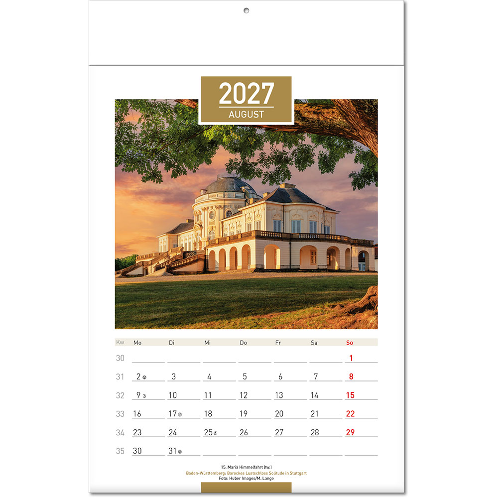 | Kalendarium | Sprache: Deutsch Deutsche Feiertage rot markiert |