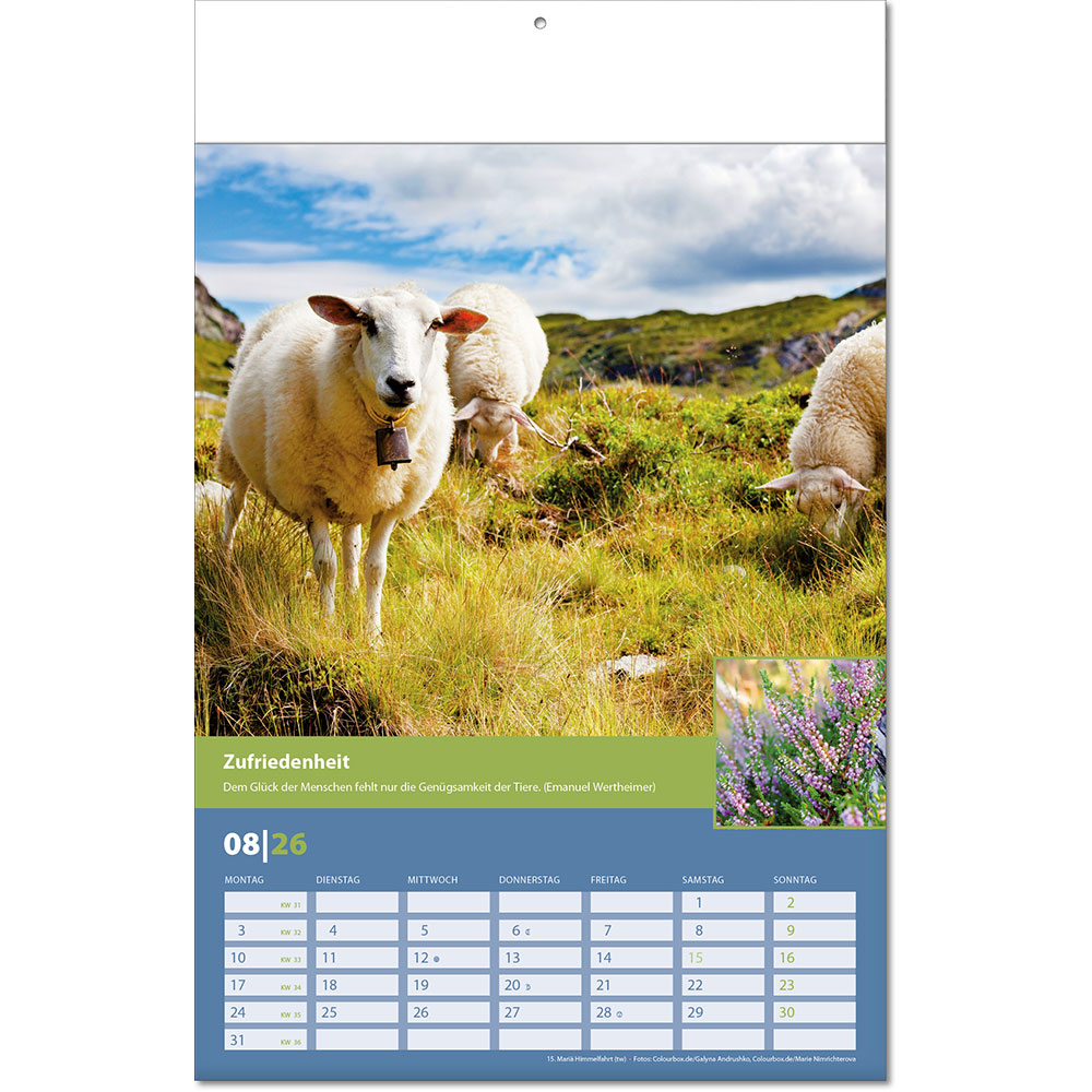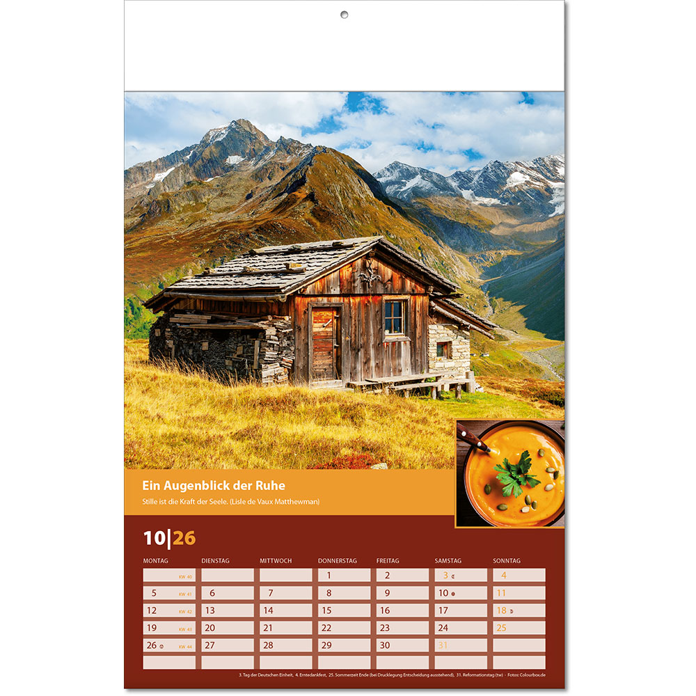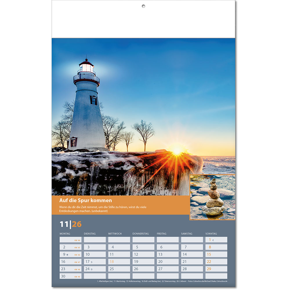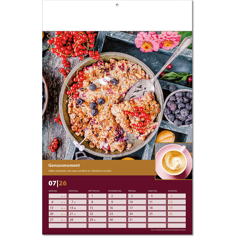 Angabe der Kalenderwochen Angabe der Mondphasen Notizfähiges Kalendarium |